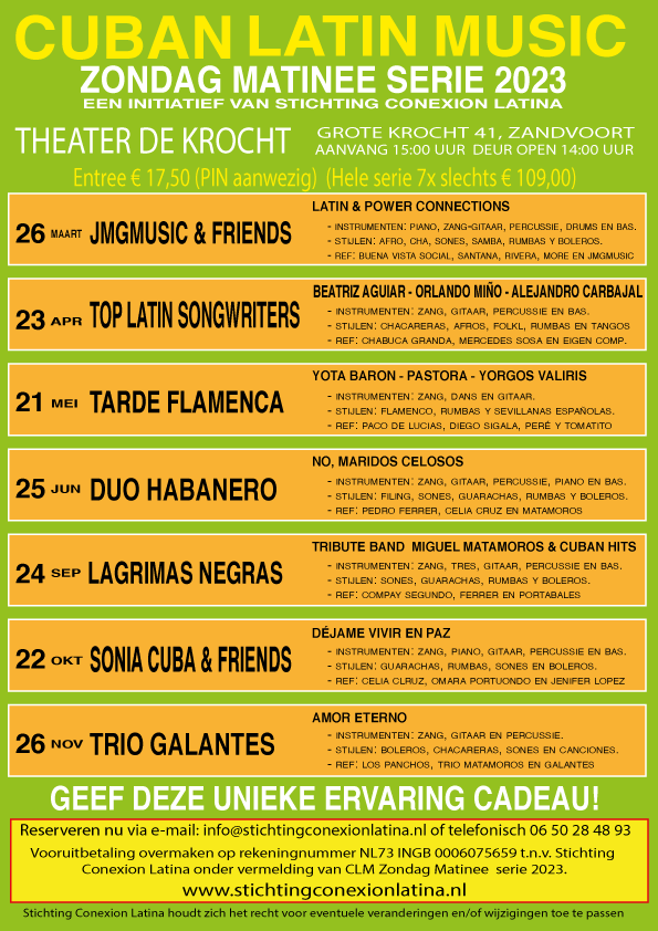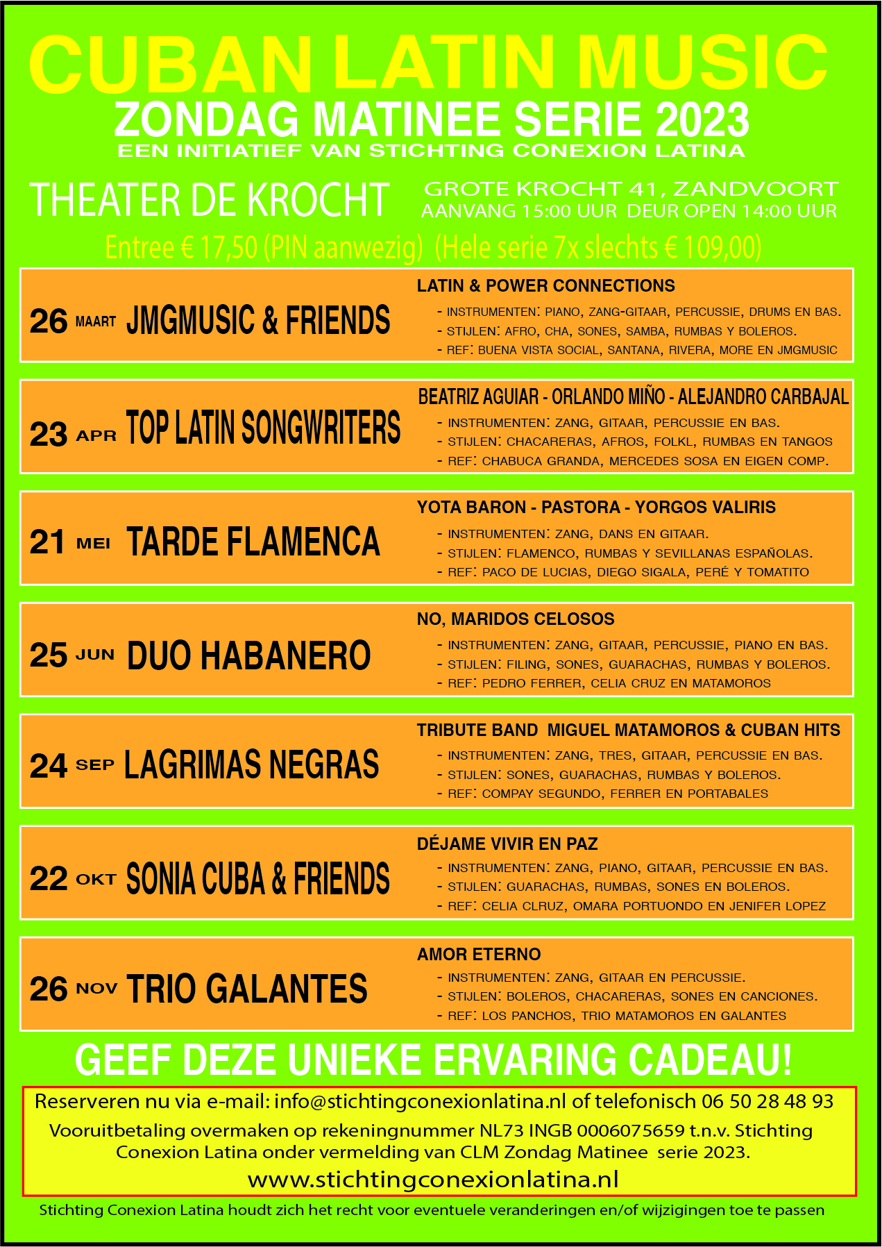 Reserveren ook via : www.bookinglatinmusic.com of www.cubaanslatinkoor.nl